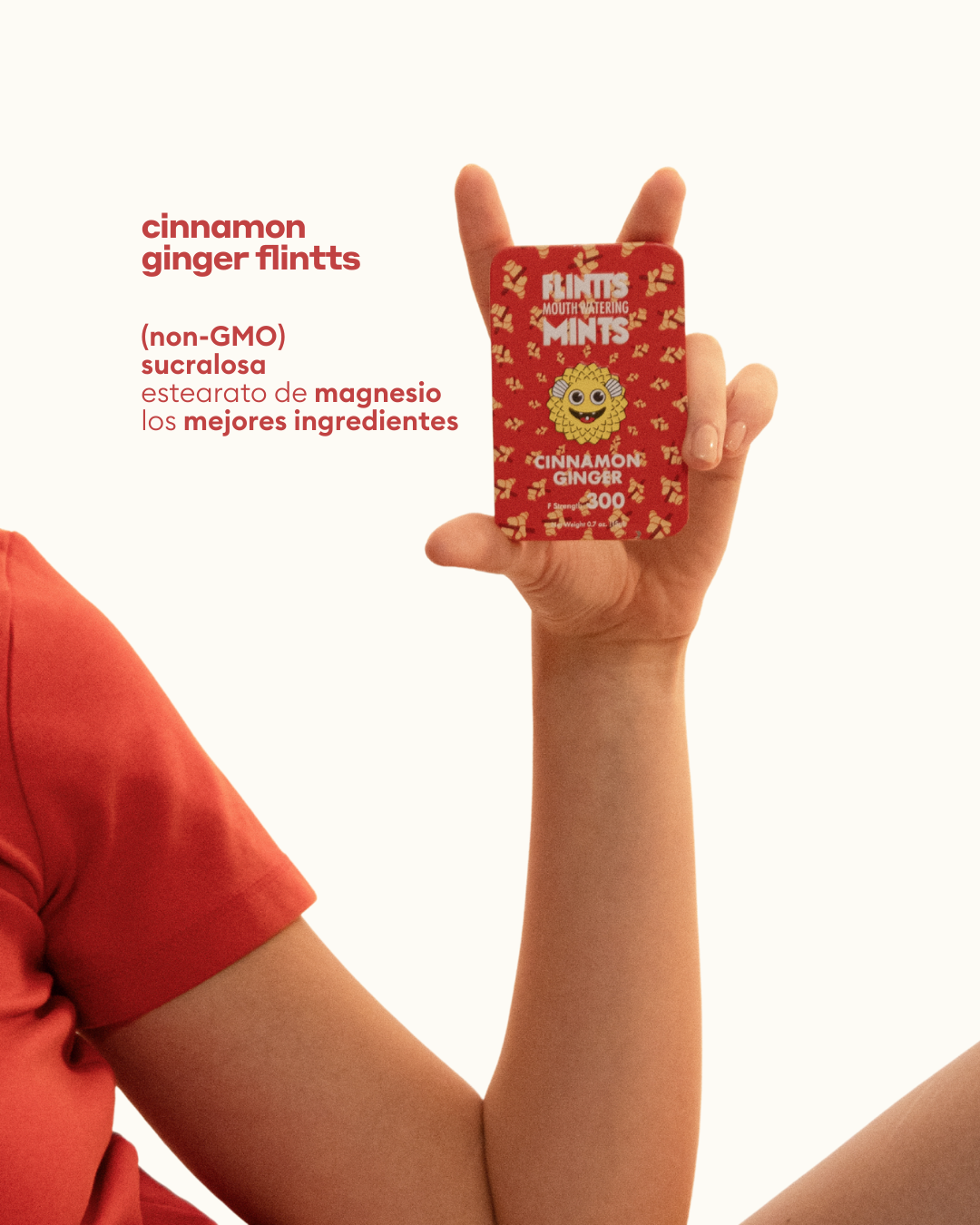 Isomalt sin OGM, Sucralosa, Estearato de magnesio (de palma sostenible), Sabor natural (mezcla de extractos vegetales, principalmente flor de Spilanthes).
