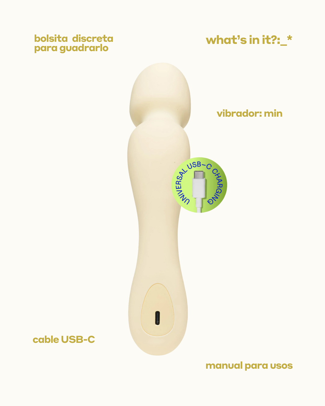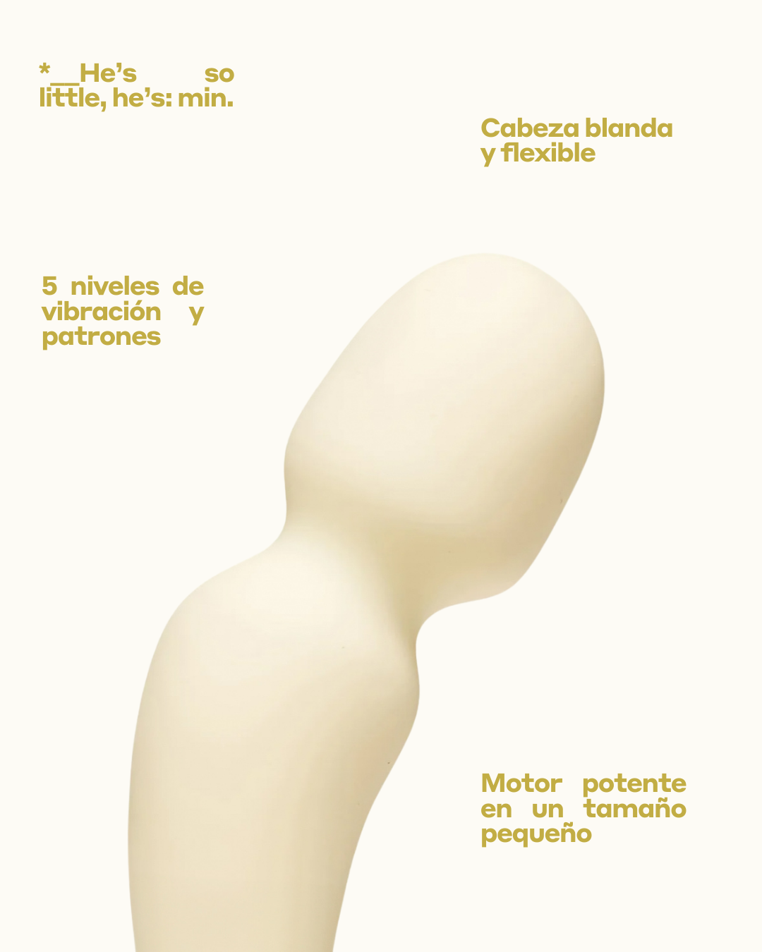 Vibrador Wand version mini, travel friendly pero con potencia. Perfecto para estimulación externa, con varias intensidades y patrones que se adaptan a tu ritmo donde quieras. Portátil y potente, perfecto para estimulación externa en cualquier momento.